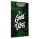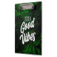 Fügen Sie Ihren alltäglichen Aufgaben einen Hauch von Positivität hinzu! Diese stilvolle Zwischenablage bietet einen üppig grünen Farnhintergrund mit feinem, fröhlichem "Good Vibes"-Text in knalligem Weiß. Dauerhaft, leicht und gebaut zu halten - es ist perfekt für Arbeit, Schule oder Spiel. Bleibe mit dieser naturlich inspirierten Zwischenablage, die gute Energie ausstrahlt!