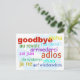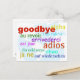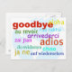 Verabschieden Sie sich mit dieser lustigen Postkarte voller verschiedener Sprachen.