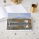 Dieses Gästebuch zeigt eine Herbstszene des Goodspeed Opernhauses und der Brücke, die sich am Connecticut River in East Haddam, Connecticut, befindet.