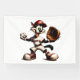 Hübsch aussehende Cartoon Katze in rot-weißer Uniform, die einen Handschuh hält und einen Baseball aufzieht, um einen Platz zu werfen.