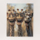 Ein Trio von Giraffen im Stil eines Cartoon verströmt Pose mit großem Lächeln und überdimensionalen Gläsern, die Freude und Freundschaft ausstrahlen. Perfekt für leichtgeartete Inhalte, tierbezogene Designs oder Kindermedien.