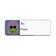 Mit seinen lila, buschigen Haaren, der grünen Haut, den großen Zaubern, den Reißzähnen und dem glänzenden Grinsen sind diese Goofy Goblin To und From gift Tag Aufkleber eine lustige Ergänzung zu jedem Geschenk.