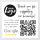 Modernes, trendy Google Reviews Anfrage Fenster Klammern. Design Features trendy Typografie Skript '' Danke für die Unterstützung unseres Geschäfts' mit Ihrem Logo, Google Logo und qr Code mit Rezensionsanfrage.