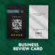 Diese Visitenkartenvorlage lädt Ihre Kunden dazu ein, eine Übersicht über Ihr kleines Unternehmen oder die von Ihnen angebotenen Dienstleistungen verlassen. Sie können einen QR-Code hinzufügen, der mit Google Reviews, Ihren Social-Media-Benutzernamen, Ihrem Firmennamen und einem anpassbaren Text verknüpft ist. Bearbeiten Sie Ihre Daten, integrieren Sie die für Ihr Unternehmen relevanten Social-Media-Symbole und personalisieren Sie den Text nach Ihren Bedürfnissen. Fügen Sie Ihr Logo zu diesem modernen Design hinzu, das es Ihren Kunden ermöglicht, Ihr Geschäft zu bewerten und 5-Sterne-Bewertungen verlassen.