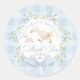 Goose Birthday Blue Gingham Thank you Classic Round Sticker
