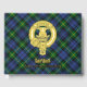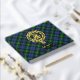 Clan Gordon Wappen Abzeichen umgeben von einem Gurt und Schnalle über Tartan Hintergrund. Benutzerdefinierter Vorder-, Rücken- und Rückentext.