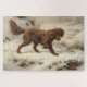 Dieses Design zeigt ein Gemälde des deutschen Künstlers Johannes Christlich Deiker (1822-1895). Es zeigt einen Hund mit kastanienbraunem Fell, der im Winter durch eine verschneite Landschaft spaziert. Es wird von einem Kaninchen angezogen, das sich im Schnee versteckt. Der Hund ist ein Gordon Setter, eine große Hunderasse, ein Mitglied der Setterfamilie, zu der auch der berühmte irische Setter und der englische Setter gehören. Setter wurden traditionell als Jagdhunde gezüchtet.