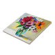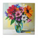 A pretty tile with an illustration of a colorful vibrant glass vase of flowers done in an ai impasto style oil painting.