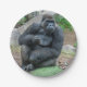 Ein schönes Foto eines Gorillas im Zoo, gedruckt auf einer Papiertüte.