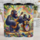 Diese lebendige und skurrile Abbildung zeigt zwei Gorillas, die in einer Dschungelgruppe darstellend sind. Einer spielt Gitarre und singt, der andere spielt Schlagzeug. Die Szene ist eine bunte und fantastische Dschungel-Bühne, mit musikalischen Noten schwebend in der Luft und seltsamen Kreaturen tanzen, um den Beat zu schaffen, eine fröhliche und lebendige Atmosphäre.