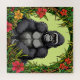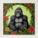 Gorilla präsentierte sich in einem dekorativen, runden Rahmen, umgeben von üppigen Bambus, Blume und Grün, wobei die tropische Natur und die Schönheit der Wildtiere hervorgehoben wurden.