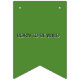 This “Born to Be Wild” party banner features a playful gorilla cutout wearing a birthday hat, bold black text, and cheerful balloon accents. The design includes three green feature flags—one on each end and one in the center—to frame the banner, while the remaining flags stay clean and bright for easy readability.