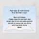 Die Geburtstagseinladungen kamen in einer defekten Packung an. Dadurch waren einige der Karten unbrauchbar. Zudem waren Zeit, Datum und Ort der Einladung so winzig gedruckt, dass man sie kaum lesen konnte. Zum Retournieren war leider keine Zeit mehr, daher habe ich mich 2x via E-Mail an Zazzle gewandt und um Feedback bzw. Rückbuchung des (ohnedies kleinen Betrages) ersucht - so wie man es mir beim Bestellvorgang im Falle von Unzufriedenheit zugesichert hatte . Bis heute hat es niemand der Mühe wert gefunden, zu antworten. Nie wieder ZAZZLE!!!!!!! Schlecht. Winzigste, kaum lesbare Ort und Zeitangaben