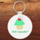 Got Cupcake Schlüsselanhänger. Maßgeschneiderter Schlüsselanhänger Got Cupcake mit einem farbenfrohen grünen Kuchen, Sprinklen und Kirsche oben.