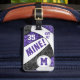 Diese Tragetasche mit dem Thema "Girl Volleyball" kann mit ihrem Namen, ihrer Monogramm- und Jerseynummer auf einem abstrakt übergroßen lila, schwarz-weißen Volleyball mit fett formatiertem typografischem Text mit dem Aufdruck "Mine!" und "Got!" - die lila und schwarzen Paneele des Volleyballs sind mit einem hübschen blueidoskopischen Muster für eine strukturierte Erscheinung verziert. künstlerisch und mädchenhaft - passen Sie den Rücken mit Namen, Adresse, Telefonnummer - von katz_d_zynes an