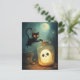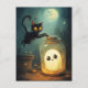 Halloween Szene mit Geist und schwarze Katze.
