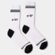 Got fish? Minimalist fishing socks with black lettering on both sides of the calves and minimalist lines on the top and bottom.