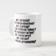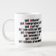Got Lean Coffee Tasse, die die 8 Abfälle auf der einen Seite aufgelistet und Lean auf der anderen Got.