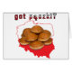 Paczki oder Ponczki, eine köstliche polnisch gefüllte Donuts, ist ein traditionelles polnisches Dessert. Wette, du kannst nicht nur einen essen. Polnischer Stolz Bekleidung und Geschenkartikel mit einem Bild von einem Haufen Paczki über eine rot-weiße Karte Polens mit den Worten got paczki? in den Farben der polnischen Flagge.