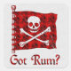 Eine rote Piratenflagge mit gekratztem weißem Schädel und Kreuzknochen begrüßt diejenigen, die kurz davor sind, an Bord Ihres Bootes zu kommen, mit der Frage des Seemanns: "Got Rum?" Ein tolles Geschenk für deinen liebsten salzigen Hund.