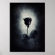 Ein dunkles und geheimnisvolles Plakat mit einer coolen Abbildung einer schwarzen Rose im Goth/Eo-Stil mit rotem Tropfen auf den Blütenblättern. Ein schwarzer Grunge-Hintergrund mit weißlicher Farbe in der Mitte, der diese stimmungsvolle und makabre Rose unterstreicht.