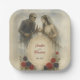 Servieren Sie etwas Spooktacular mit diesen gotischen Hochzeitszeitung-Tellern. Sie sind mit einem romantischen untoten Paar geschmückt und von dunkelroten, schwarzen und blauen Rose umgeben. Sie sind perfekt für Halloween-Liebhaber oder Liebhaber von Horror und dunkler Romantik.