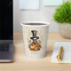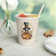 Erntedank mit einem gruseligen Skelett in einem Hut mit Herbstlauben und Kürbissen.