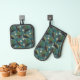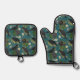 Goth Crows & Black Rose Tief Aquamarines Muster Ofenhandschuh & Topflappen-Set