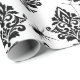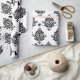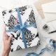 Die perfekte Geschenkpackung für Geburtstage und Halloween! Dieses gruselige schwarz-weiße Damast-Packpapier mit Spinnen, Spinnweben, Fledermäusen, Schädeln und Raben