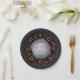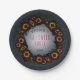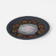 Partyplatte mit einem personalisierten Halloween-Partydruck. Aufmachung einen goth Entwurf mit klarem buntem und dunklem Blumen und Schläger vereinbart als Kranz.