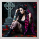 Ein schönes Goth Girl, das in einem Friedhof sitzt
