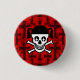 Dieser gotische Button mit Goth Girl Skull & Crossbones mit einem roten und schwarzen Gothic-Quermuster-Hintergrund.