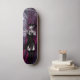 Skateboard mit einem schönen, beängstigend aussehenden, schwarz stehend gekleideten Gothmädchen vor prächtigen lila / roten Vorhängen, einem gotischen Fenster und spukhaften Spinnweben. Ein stilvolles und originelles Geschenk für ein Gothmädchen. Benutzen Sie es für den vorgesehenen Gebrauch oder hängen Sie es als Kunst an der Wand! Aus herrlich gotischen Designs.