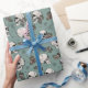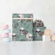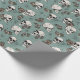 Dieses in schwarzer Tinte handgezeichnet Packpapier weist ein beatufiliges Muster von Schädeln, Rose und Spinnweben in Creme- und Blütentönen auf, die alle auf einem eleganten eukalyptusgrünen Hintergrund stehen.