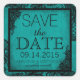 Schwarze Spitze über aquamarinem Grunge Hintergrund Gothic Save the Date Aufkleber Etikett.