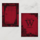 Schwarze Spitze auf rotem Grunge Hintergrund Platzkarte Design für eine gotische Hochzeit.