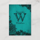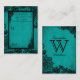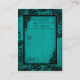 Schwarze Spitze auf aquamarinem Grunge Hintergrund Platzkarte Design für eine gotische Hochzeit.