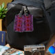 Lila Ornament mit schmuckartigem Herzen, leicht zerkleinert und etwas geknackt, aber nicht gebrochen