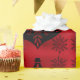 Fantastisches goth Art-Verpackungspapier hat einen dunklen Burgunder-Hintergrund, einen schwarzen Schnee und eine Weihnachtsverzierung mit einem Schädel in ihm. So cool für eine alternative Weihnachtsgeschenkverpackung.