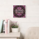 Goth Pink Ornament mit Skull Quadratische Wanduhr