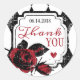 Grunge rote Rose und Diamantenhintergrund mit Dankeschön und Date Label Design für eine gotische Hochzeit.