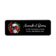 Adressetiketten mit einer Goth Style Illustration. Schöne rote Rosen und goldene Blätter umgeben einen schwarz-weißen Schädel.