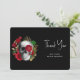 Vielen Dank Karte mit einer schönen Abbildung. Schöne rote Rosen und goldene Blätter umgeben einen schwarz-weißen Schädel.