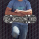 Diese gotischen Schädel sind in einem Käfig gefangen und versuchen, frei zu werden! Dieses Schädeldesign macht ein schlechtes Skateboard.