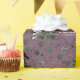 Dieses einzigartige und elegante irisch-gotische Hochzeitsverpackungspapier-Design bietet schöne handgezeichnet irische Illustrationen in schwarzer Tinte vor einem eleganten, dunklen Pflaumen lila Hintergrund. Dieses festliche Grünpapier mit grünen Nelken, Schädeln, Krähen, grünen Rose und Wildblumen eignet sich ideal für Hochzeiten, Brautpartys und andere März. Personalisieren Sie Ihre Hochzeitsdetails.