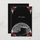 Ein Vintages inspiriertes Design mit einem schwarzen Top-Hut und einem Hochzeitslüfter mit tiefen rote Rosen auf einem Jet-schwarzen Hintergrund. Für Steampunk, Vampire, Goth Hochzeiten und Veranstaltungen.