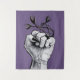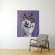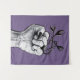 Hexer handlicher Wandteppich mit einer zeichnend Tinte, die eine Hand in Faust mit scharfen schwarzen Fingernägeln und einen schwarzen Ring mit bösen Monstern mit scharfen Zähnen über lila Hintergrund darstellt. Lustige, gruselige Illustration mit gotischem Flair.