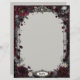 This stationery is beautiful and vintage-looking with dark red, black, and bright white flowers, gray foliage, a gray skull, and an ornate Gothic frame. Personalize with your monogram in an alabaster white badge at the bottom. Very striking and darkly romantic design.