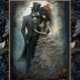 Abstraktes gotisches Blumenmuster, das mit den Hochzeitseinladungen von Bride und Groom Skelett übereinstimmt. Kommerzielle Verwendung für das Crafting/Decodieren ok. Der Wiederverkauf ist auch ok.