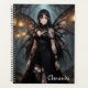 A pretty personalized planner with an anime fairy girl dressed in a black gothic dress in an enchanted forest fantasy art.